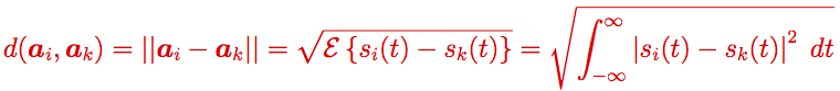 En la representación vectorial, ¿qué significado tiene la distancia entre la representación vectorial de dos señales en términos del parecido entre ambas señales? O en otras palabras, ¿qué medida sobre las señales en tiempo continuo cuantifica la distancia entre la representación vectorial de dos señales?