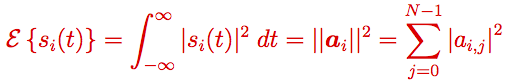 Con esta definición de producto escalar, ¿cómo se relaciona la energía de una señal con su representación vectorial? O dicho de otro modo, ¿cómo se puede obtener la energía de una señal a partir de su representación vectorial?