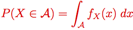 Indique cómo se calcula la probabilidad de que la variable aleatoria tome valores en un cierto intervalo A